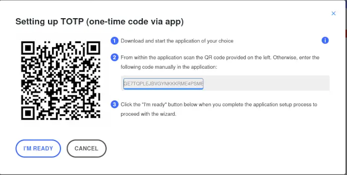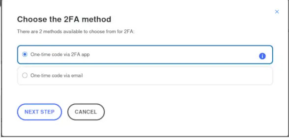 Dans la première fenêtre choisissez One time code puis validez (cliquez sur next step).